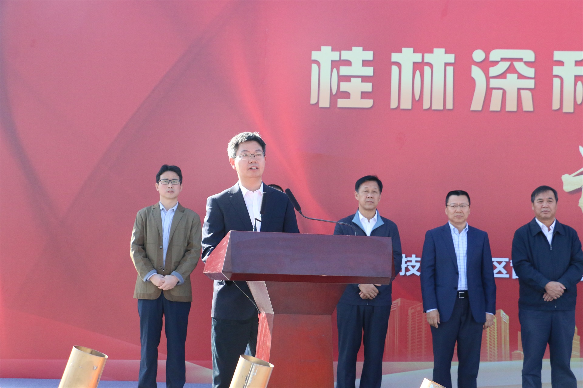 桂林市長秦春成講話,強(qiáng)調(diào)桂林近年來致力于重振工業(yè)雄風(fēng),著力推動產(chǎn)業(yè)做強(qiáng)升級,推動了新一代信息技術(shù)、新能源、新材料、節(jié)能環(huán)保等新興產(chǎn)業(yè)蓬勃發(fā)展,引進(jìn)了包括深科技在內(nèi)的一批行業(yè)領(lǐng)軍企業(yè),為桂林工業(yè)高質(zhì)量發(fā)展注入強(qiáng)勁動力。他表示桂林市委、市政府將一如既往、全力以赴為項目建設(shè)創(chuàng)造最優(yōu)環(huán)境、給予最大支持,要求有關(guān)政府部門要通力合作,努力為深科技項目建設(shè)提供一流服務(wù),希望施工單位在確保工程質(zhì)量的前提下高效推進(jìn),確保項目按期竣工投產(chǎn)。